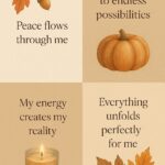 Inspirées par la saison automnale, ces affiches mêlent illustrations raffinées (citrouilles, bougies, feuilles) et affirmations réconfortantes. Elles créent un cadre propice à la sérénité et à la créativité.