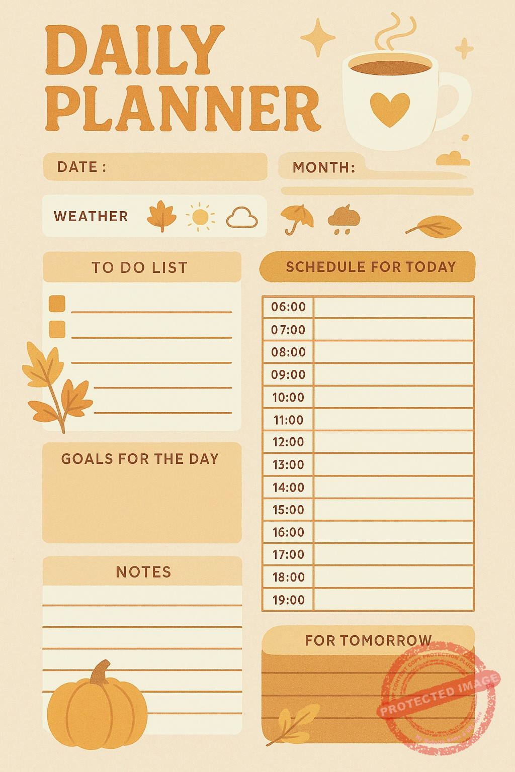 Organise ta journée avec ce daily planner au style automnal chaleureux.