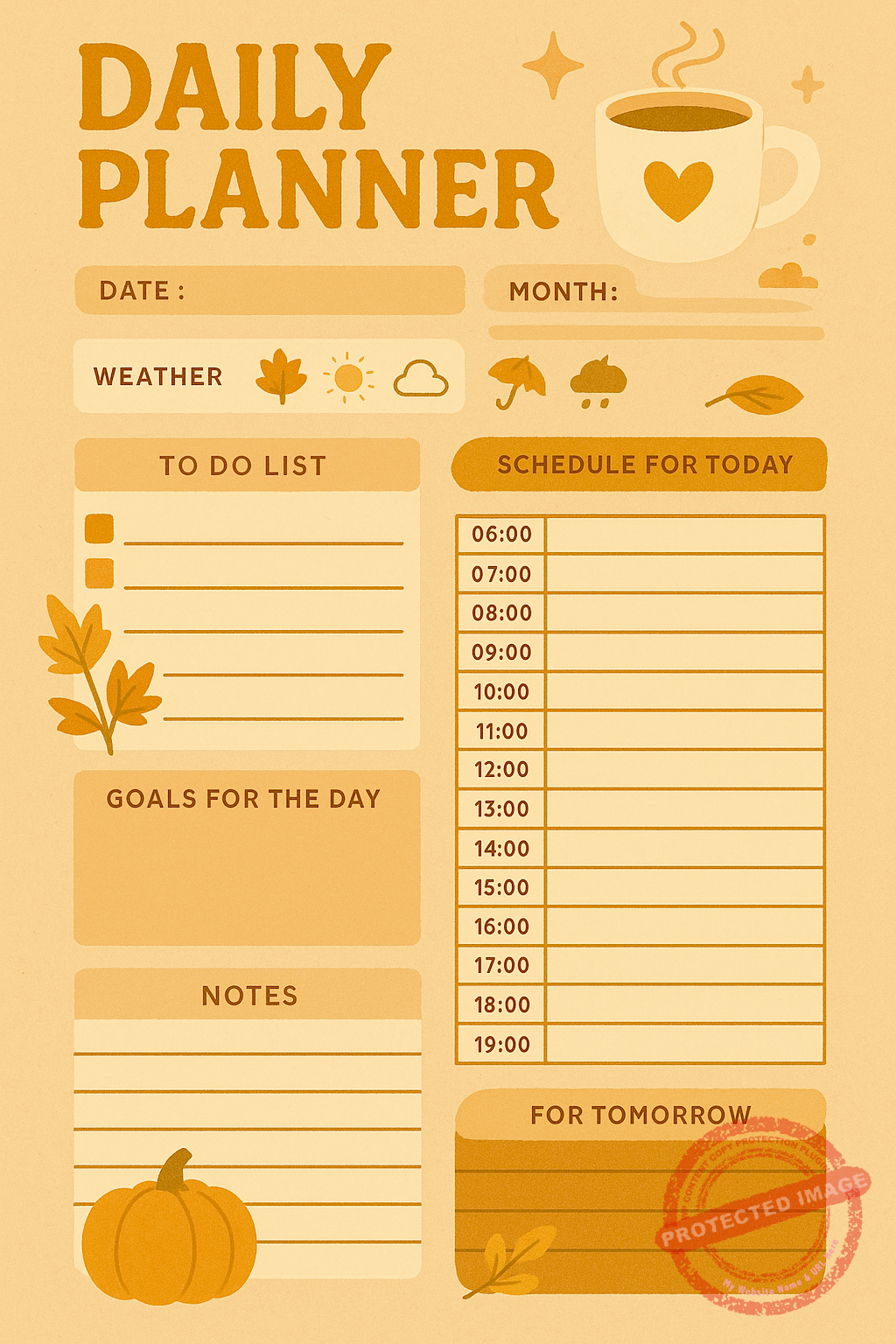 Organise ta journée avec ce daily planner au style automnal chaleureux.