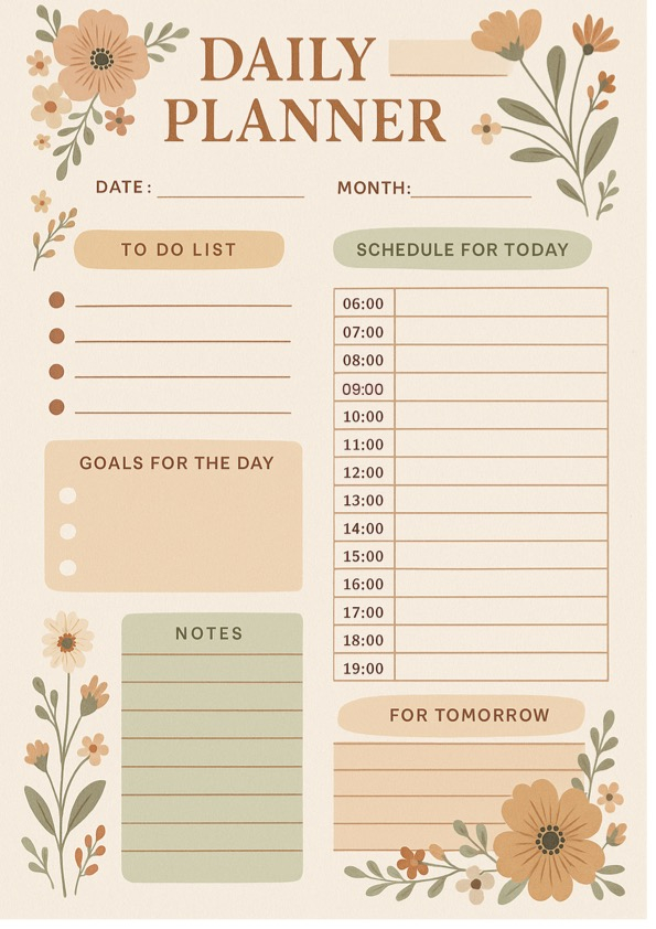 Organise ta journée avec ce daily planner au design floral doux et élégant.