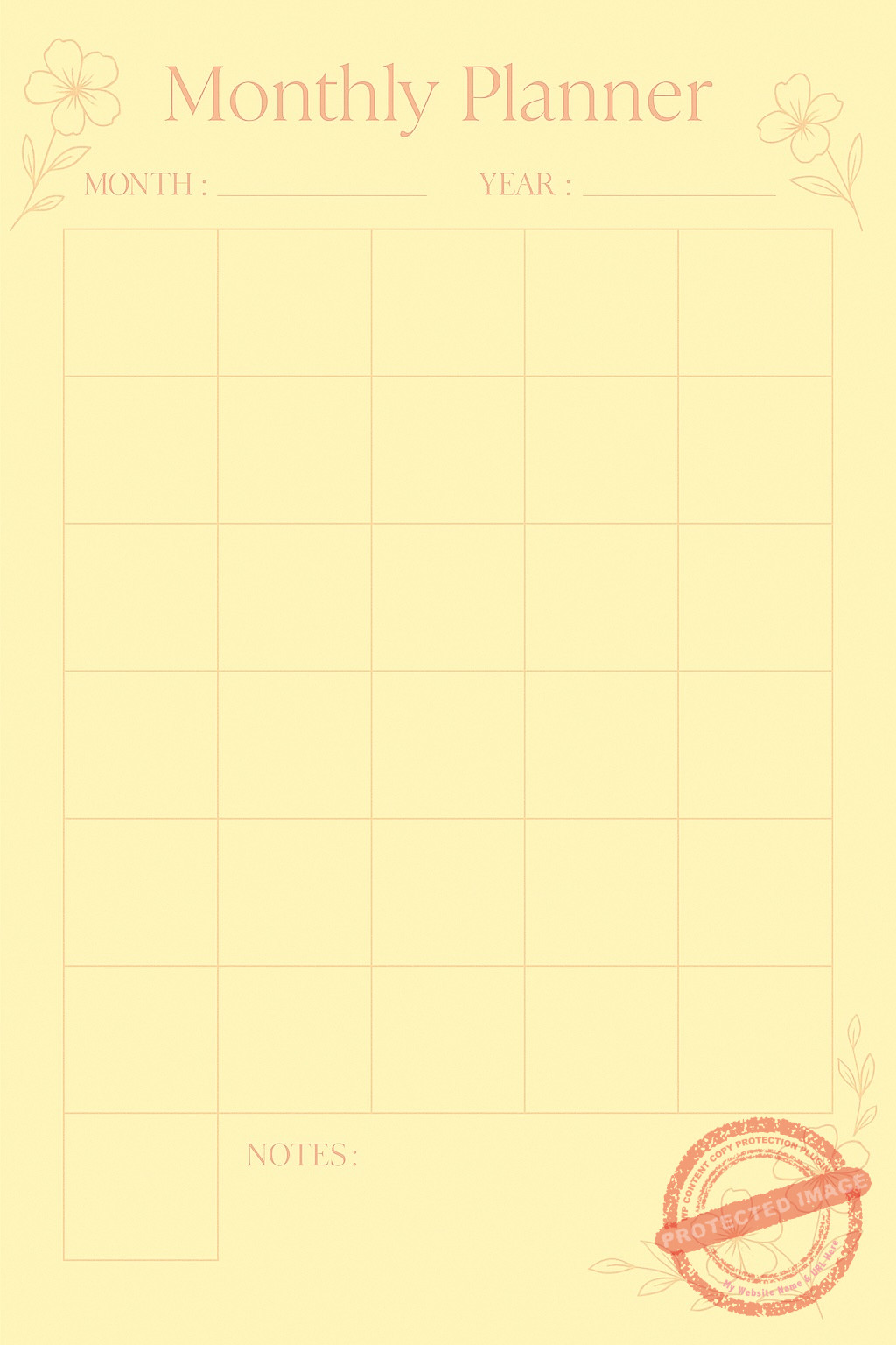 Monthly Planner – Thème Floral jaune pastel clair