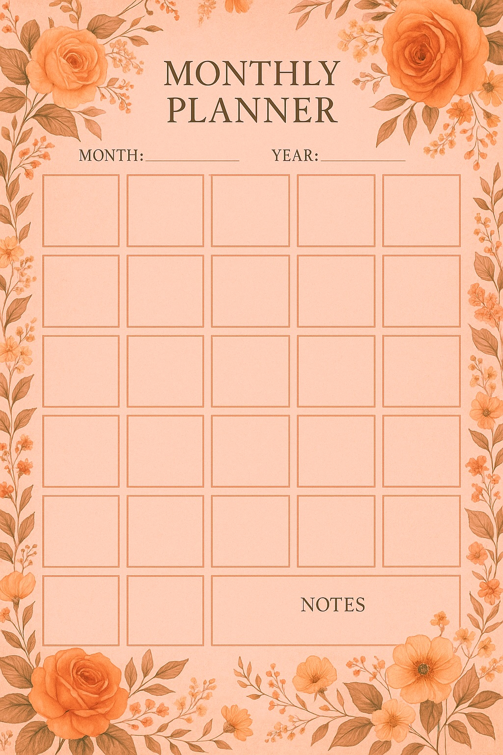 Monthly Planner – Thème Floral Rose Vintage