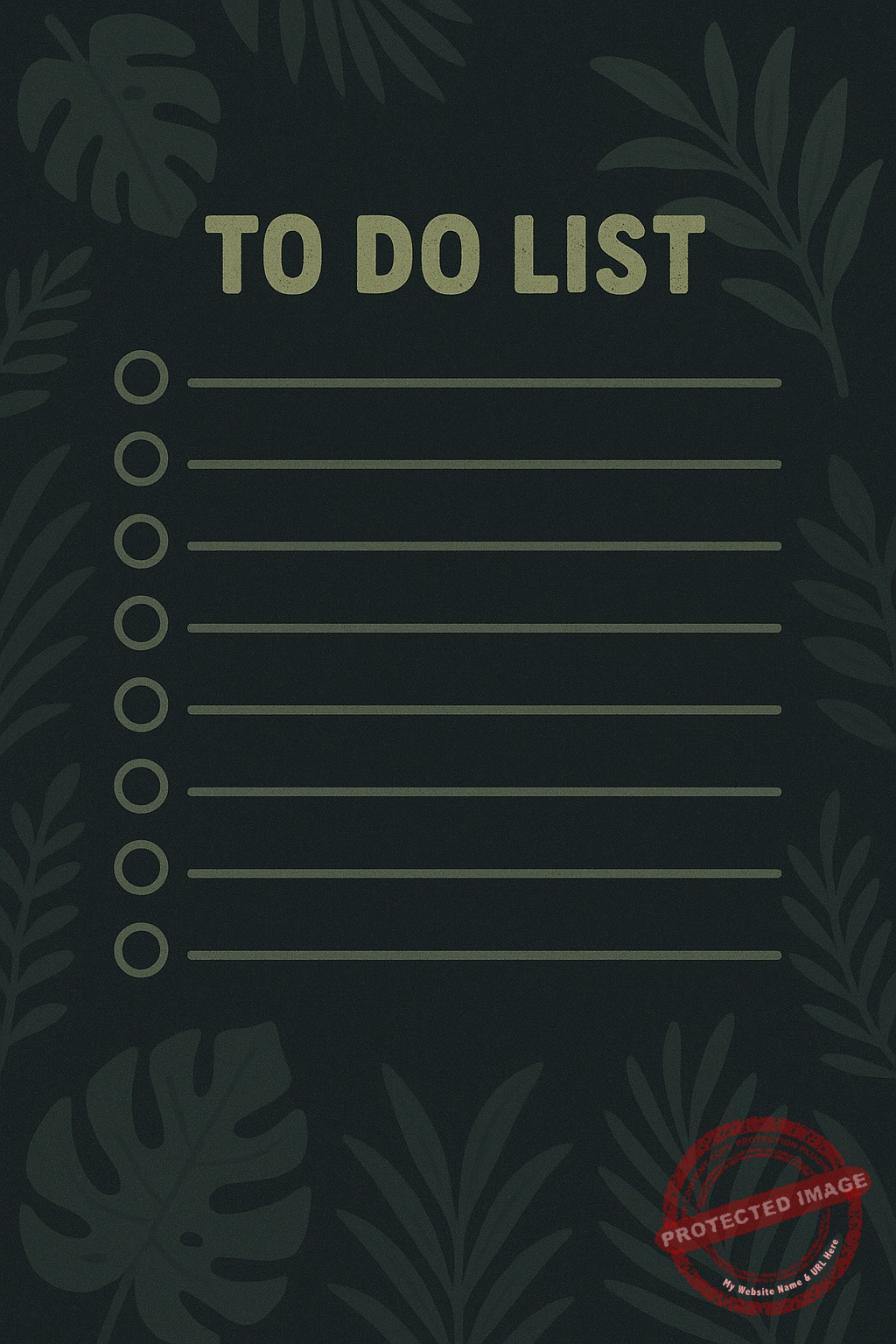 Sobre et mystérieuse, cette to-do list jungle sombre t’offre un cadre élégant pour organiser tes journées. Son design minimaliste aide à se concentrer pleinement sur l’essentiel.
