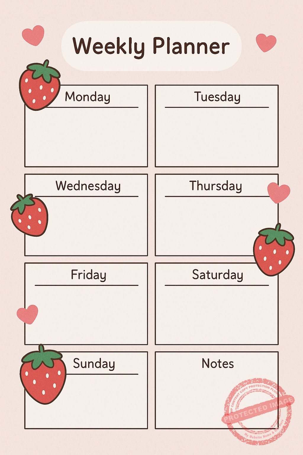Weekly Planner – Thème fraises Cute
