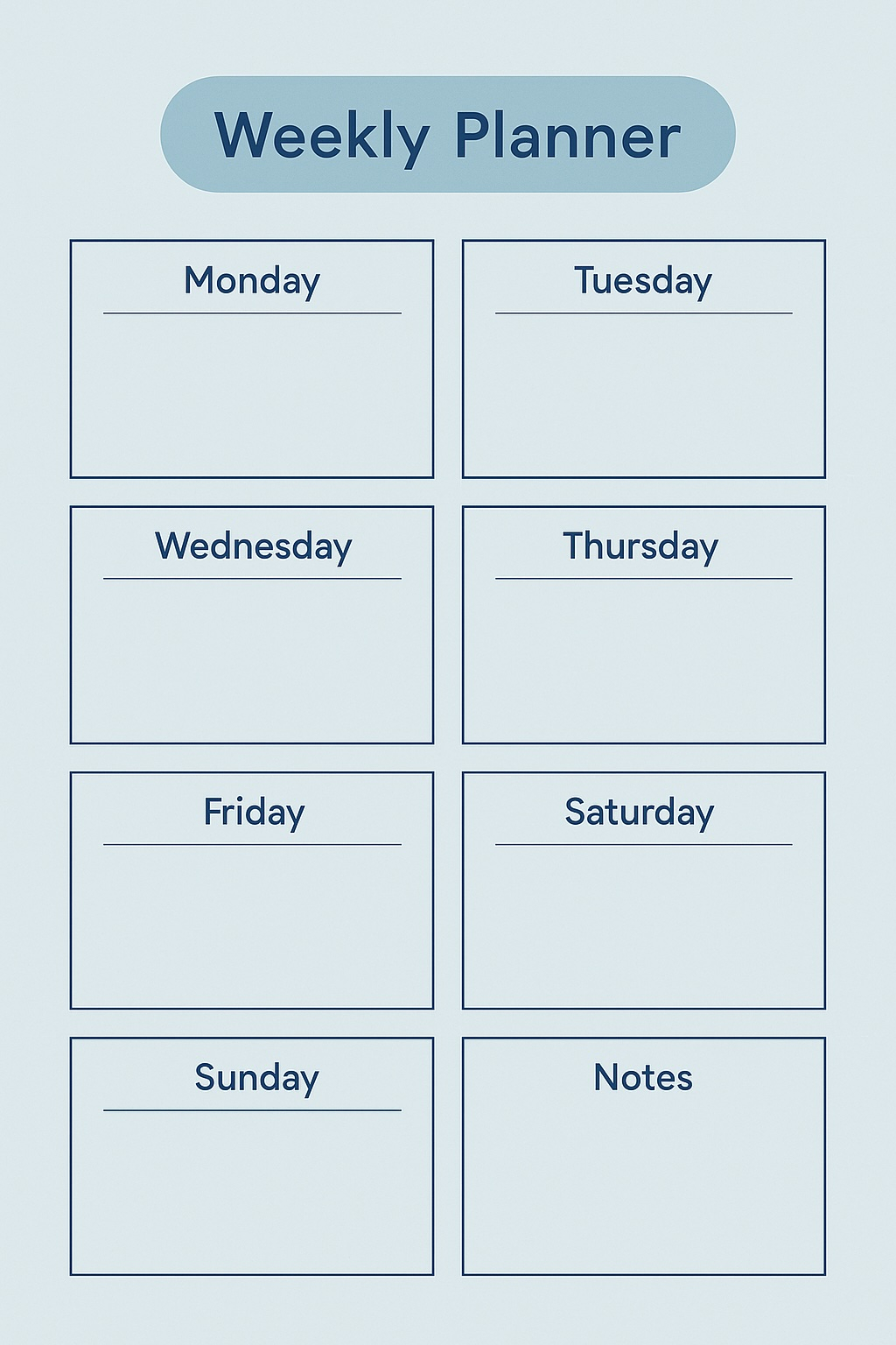 Structure ta semaine avec ce weekly planner minimaliste bleu.